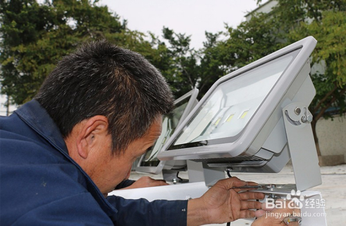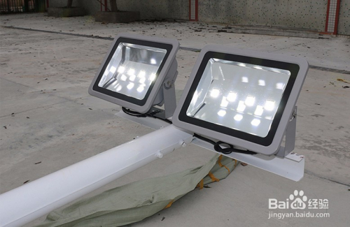 3.將燈具安裝在燈頭支架上,連接電線,調節投光角度