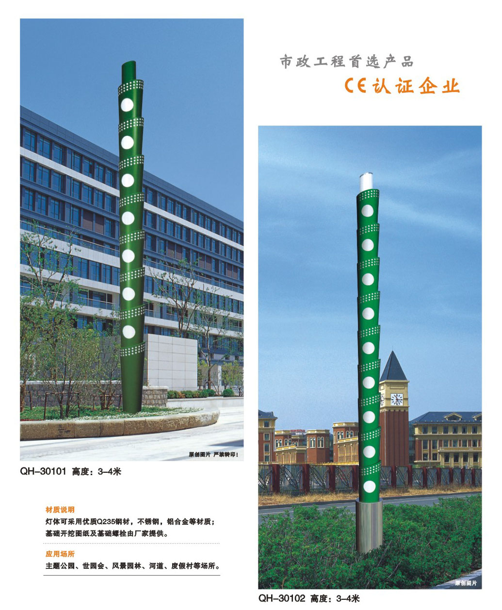 用途:景觀燈適用市政工程、園林亮化工程和公園、開發區、別墅區、廣場等戶外路燈照明工程