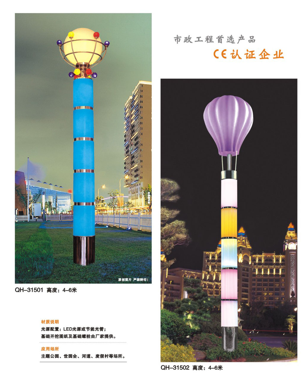 用途:景觀燈適用市政工程、園林亮化工程和公園、開發區、別墅區、廣場等戶外路燈照明工程