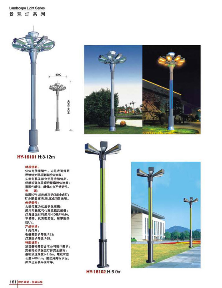 用途:景觀燈適用市政工程、園林亮化工程和公園、開發區、別墅區、廣場等戶外路燈照明工程