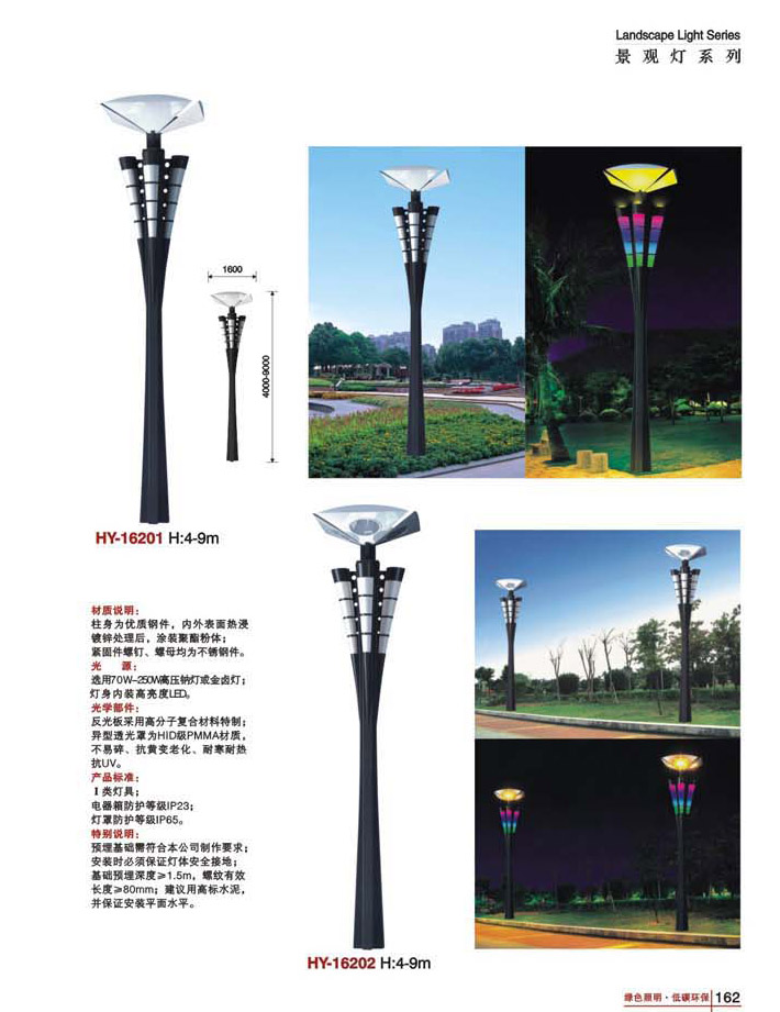 用途:景觀燈適用市政工程、園林亮化工程和公園、開發區、別墅區、廣場等戶外路燈照明工程
