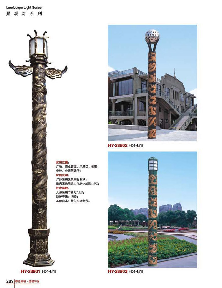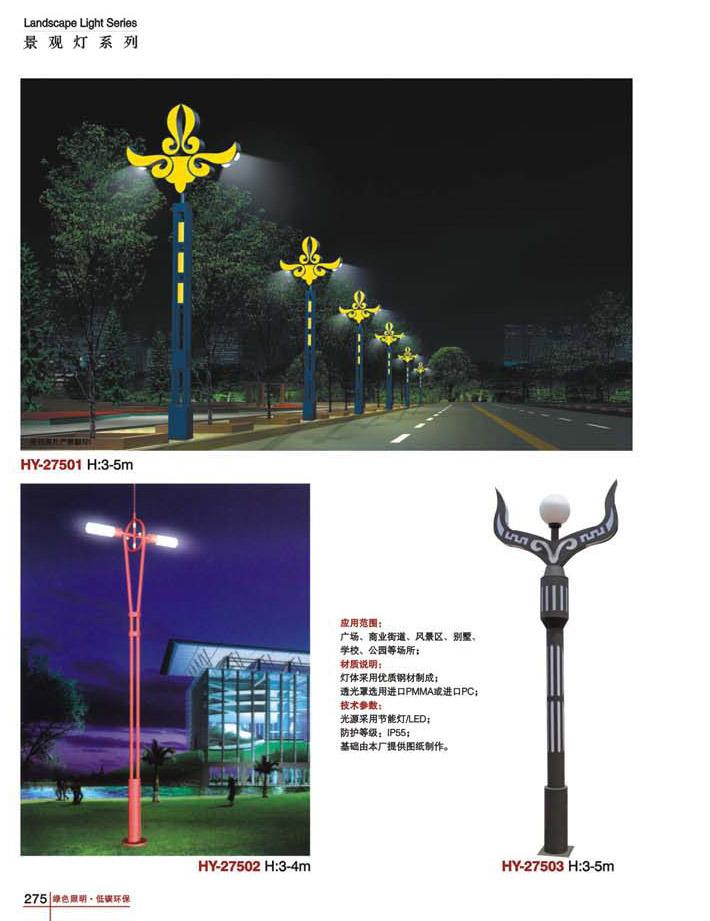 用途:景觀燈適用市政工程、園林亮化工程和公園、開發區、別墅區、廣場等戶外路燈照明工程