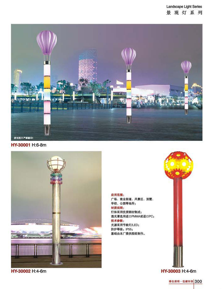 用途:景觀燈適用市政工程、園林亮化工程和公園、開發區、別墅區、廣場等戶外路燈照明工程