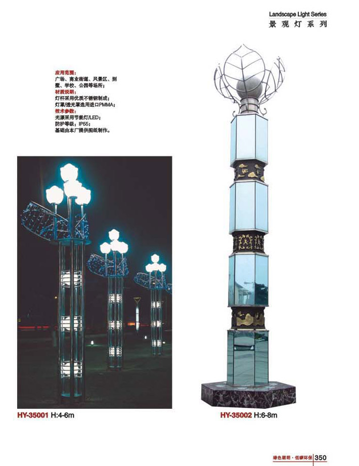 用途:景觀燈適用市政工程、園林亮化工程和公園、開發區、別墅區、廣場等戶外路燈照明工程
