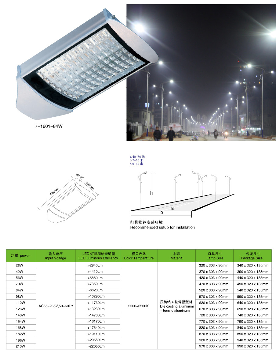 led路燈燈頭技術參數:
