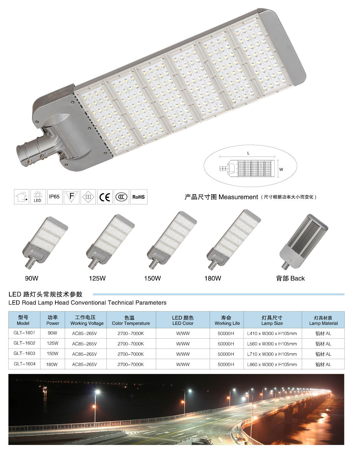 led路燈燈頭技術參數: