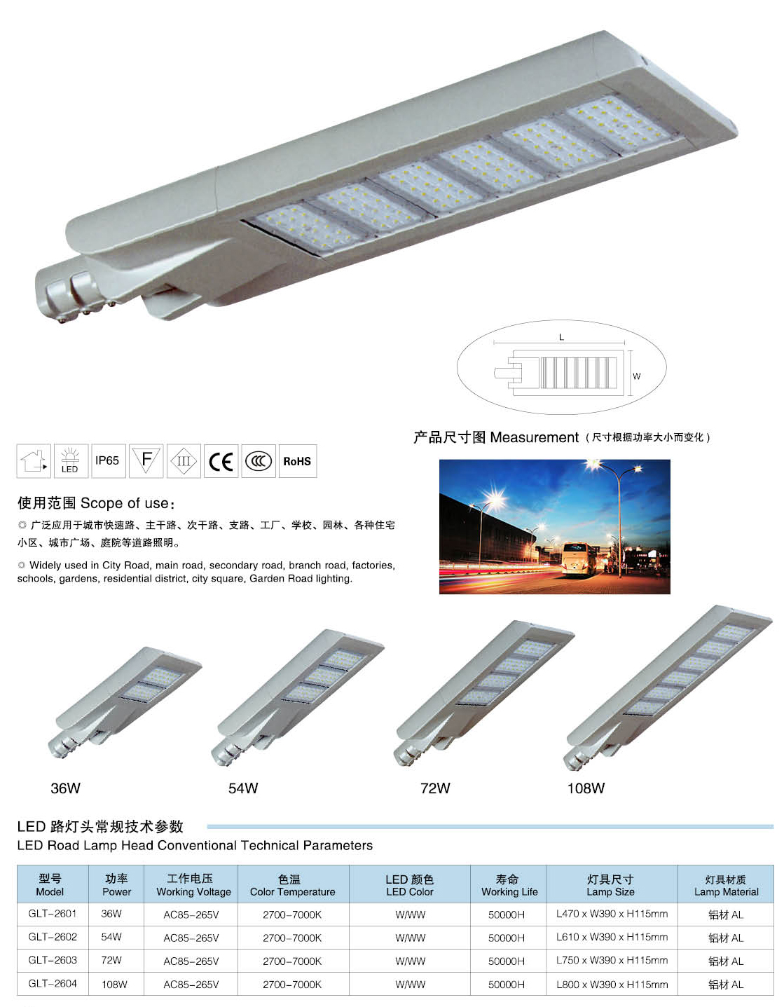 燈具參數:36W、54W、72W、108W
