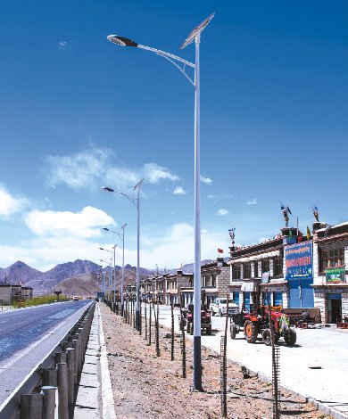 將太陽能電(dian)池板安裝(zhuang)在(zai)路燈桿頂部,確保面向南方并(bing)獲得最(zui)大的日照(zhao)量。