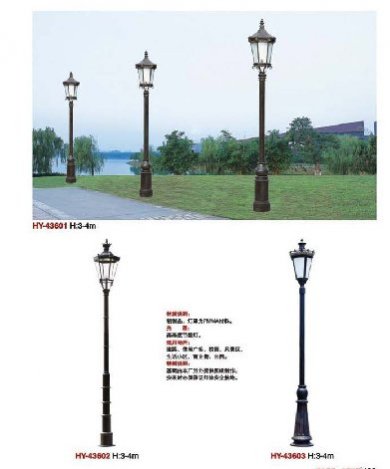 用途:庭院燈適用市政工程、園林亮化工程和電力局、開發區、別墅區、廣場等戶外路燈照明工程