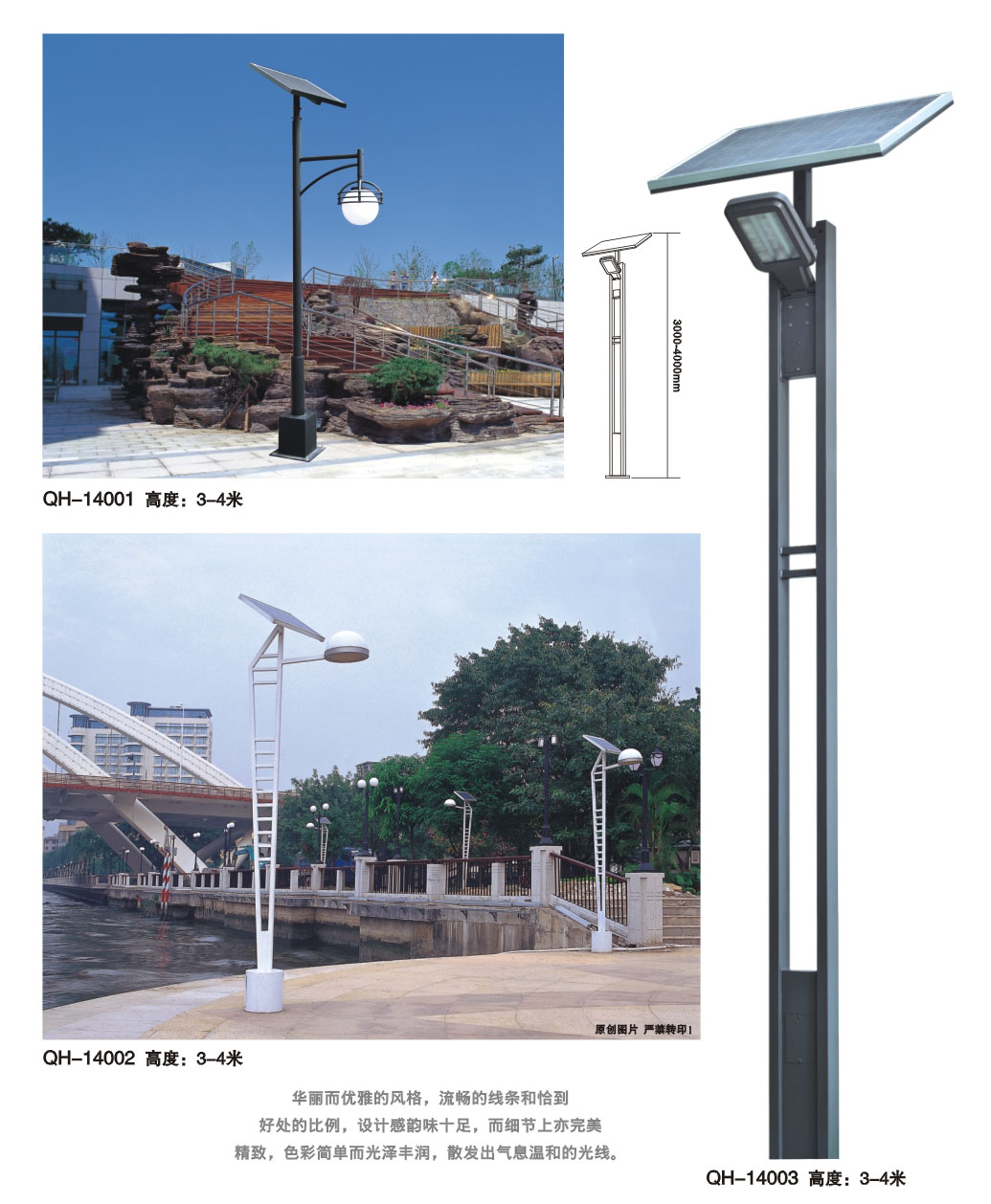 太陽能(neng)庭院燈(deng)QH-10301(簡(jian)約太陽能(neng)庭院燈(deng))適用于公園、廣場、校園、市政道路等眾多場所,能(neng)夠起到非常不錯的照明與(yu)景觀功能(neng),是(shi)照明工(gong)程優質優選產品